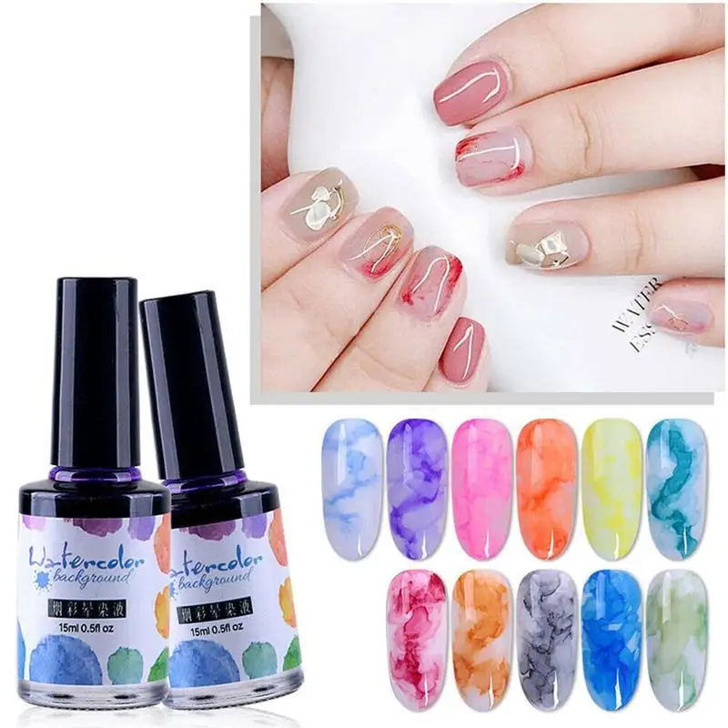 15 ML DIY Watercolor Ink Nail Polish Blooming Gel Smoke Effect Smudge Bubble Varnish Manicure Decor