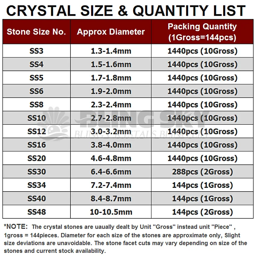 Addition Information of Sapphire SS3 SS4 SS5 SS6 SS10 SS20 SS30 for Nails Art Rhinestones Glitter Flat Back Glass Crystal N