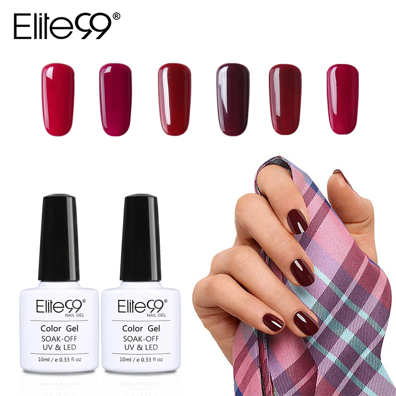 Elite99 10ml Wine Red Color Series Nail Polish Semi Permanent Nail Gel Varnish Soak Off UV LED Gel Lacuqer Colorful Polishes