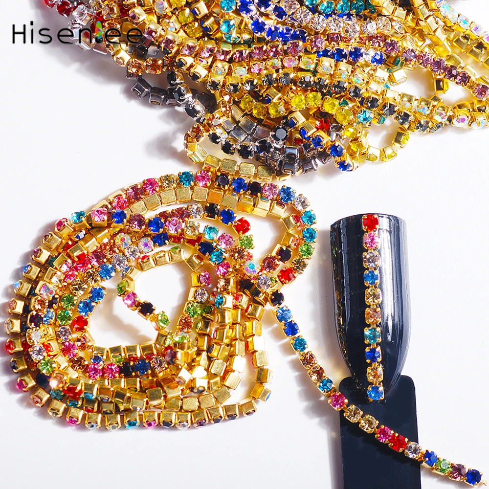 SS6 60CM/pack Glass Single Claw Nail Chains 3d Nail Art Charm Jewelry Making Findings DIY Nail Art