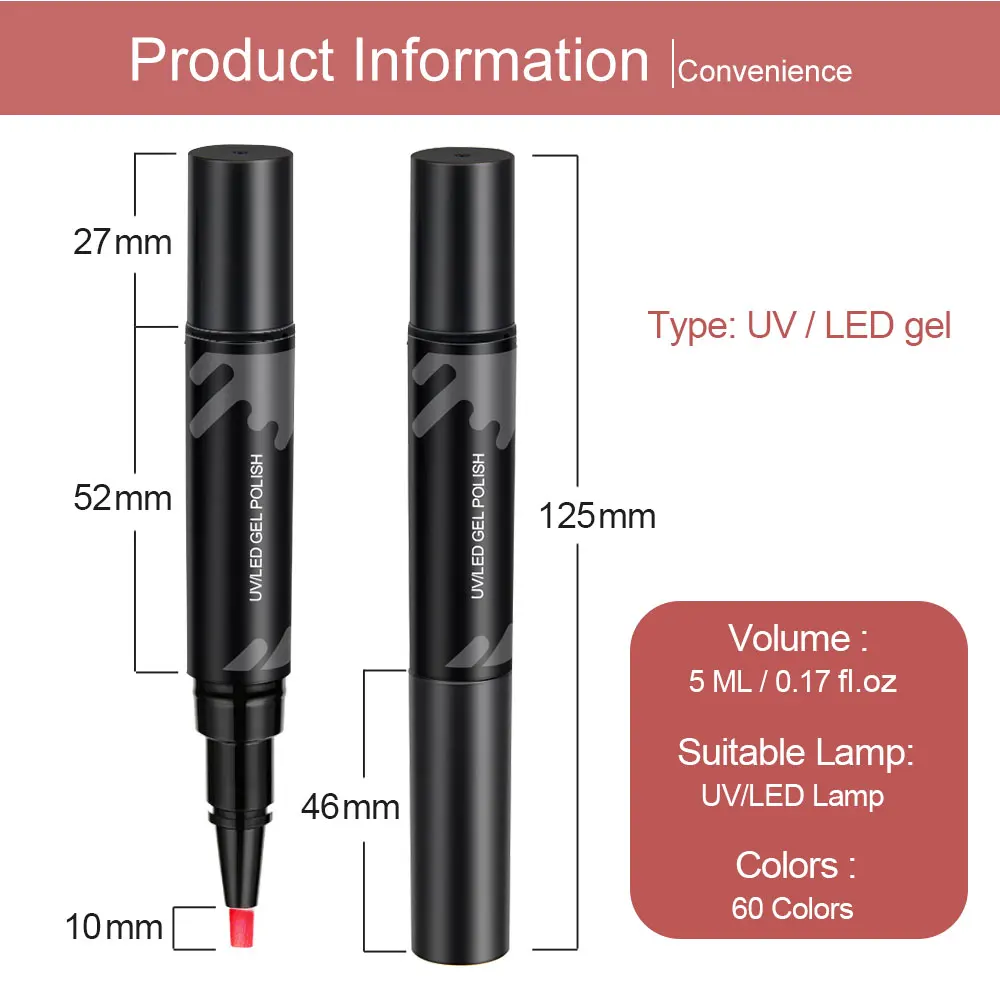 Addition Information of LKE LED UV Nail Gel Pen Glue Design Art Manicure Venalisa 60 Colors Soak Off Enamel Convenience Cle