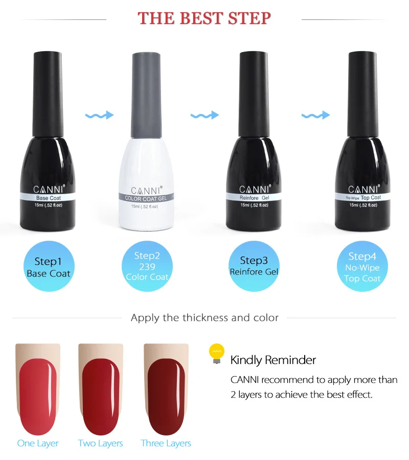 CANNI 15ml soak off No sticky layer TOPCOAT fast dry make up nail base coat gel nail polish Reinfore color coat varnish gel