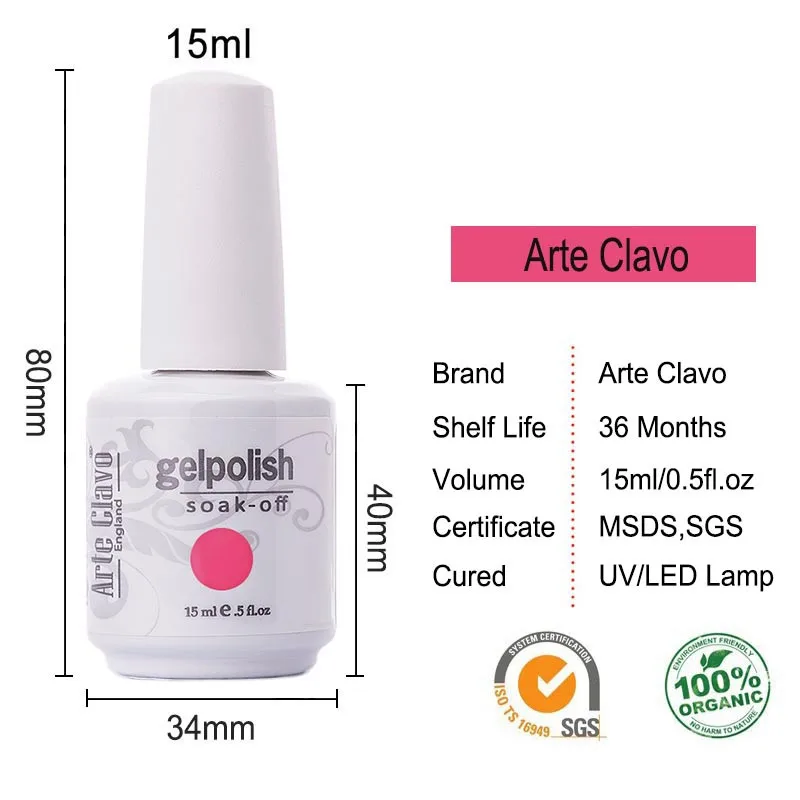 Arte Clavo 15ml Premium Qualiity Color Nail Gel For Nail Art Soak off LED Gel Polish Long-Lasting Gel Varnish