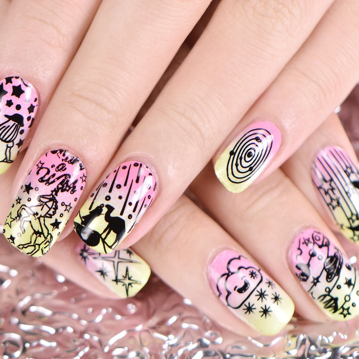 BeautyBigBang Star Moon Design Stamp For Nails Accessoires Starry Sky Stencil Mold Nail Stamping Pl