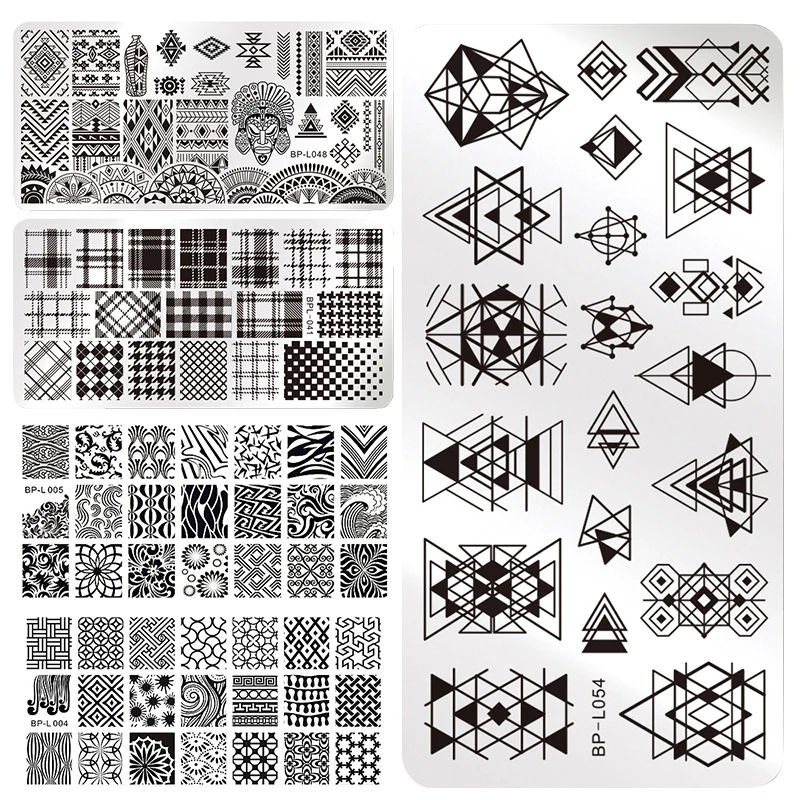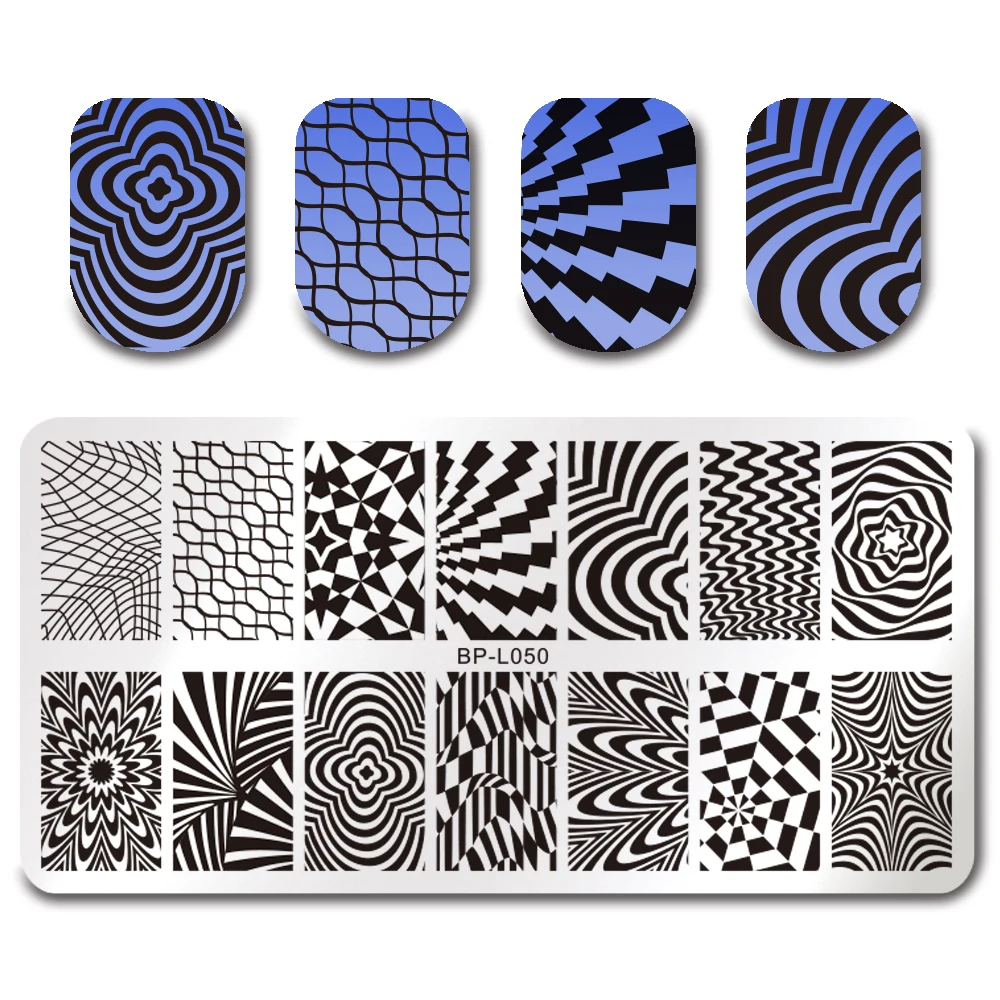 BORN PRETTY Geometry Rectangle Stamping Template Geometric Pattern Manicure Nail Art Stamp Image Pl